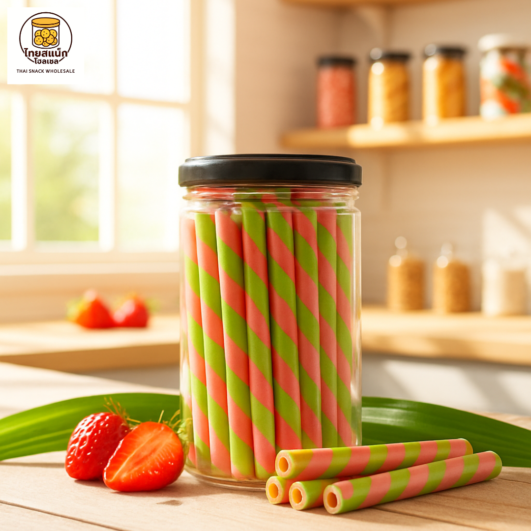 💖 เติมความหวานให้วันหยุด! เวเฟอร์โรลรสสตรอว์เบอร์รี่ + ใบเตย🍓